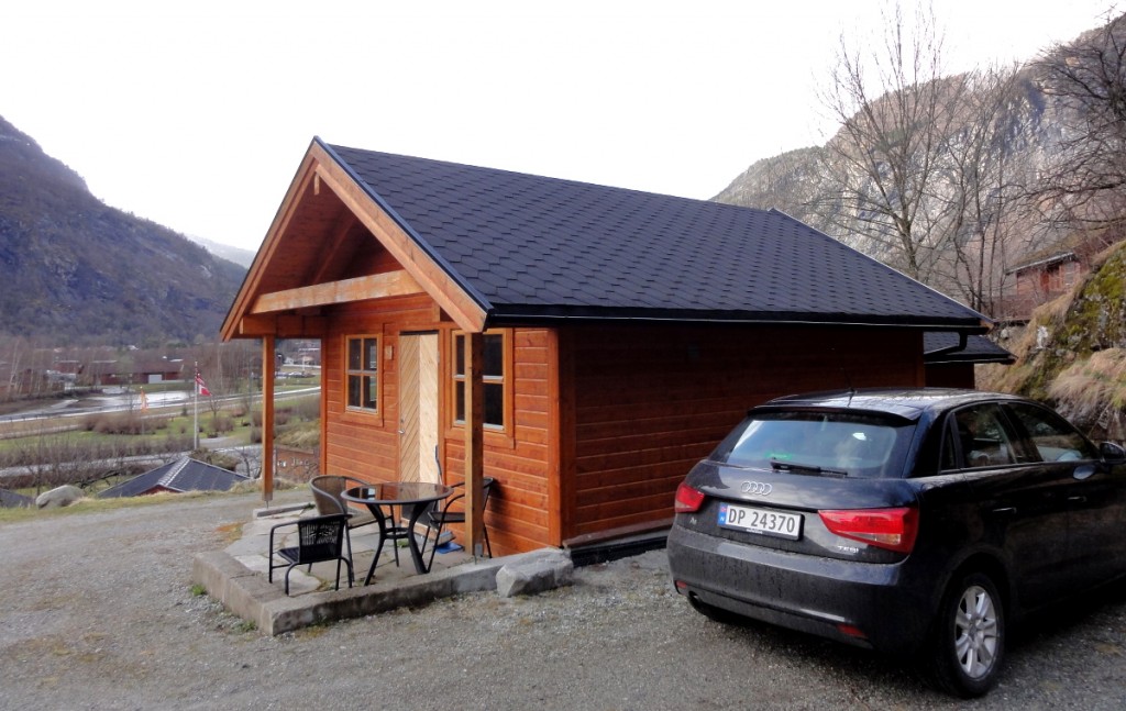La route jusqu’à notre prochaine étape n’est pas longue, une petite demi-heure à traverser des vallons en partie enneigés, plusieurs remontées mécaniques sur le chemin montrent qu’il y a de petites « stations de ski », on avance jusqu’à Marifjøra où l’on rejoint le fjord puis au bout notre destination Gaupne, lové tout au fond du Gaupnefjorden, un bras du Lustrafjorden, lui même un bras du Sognefjorden…Les poupées russes !